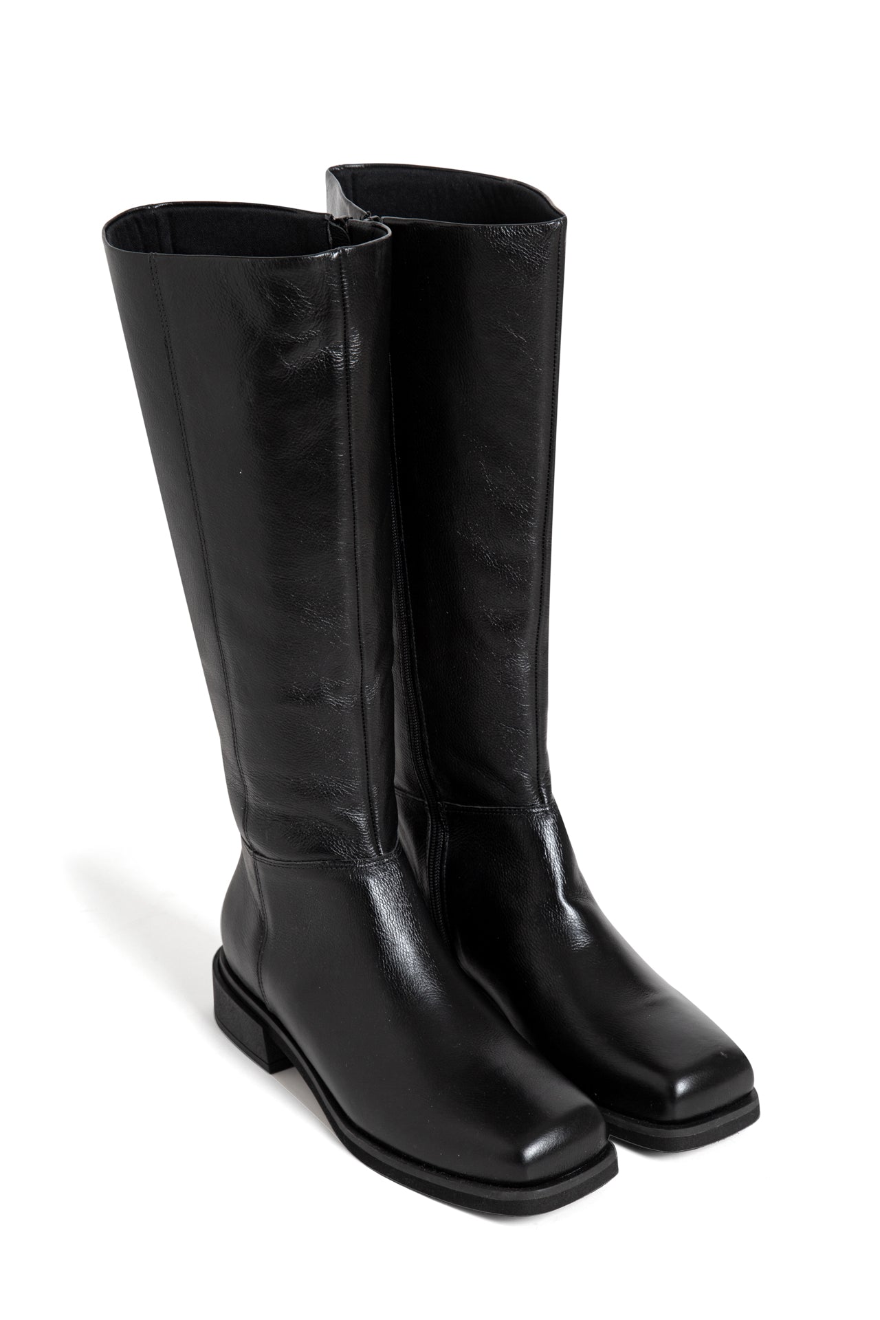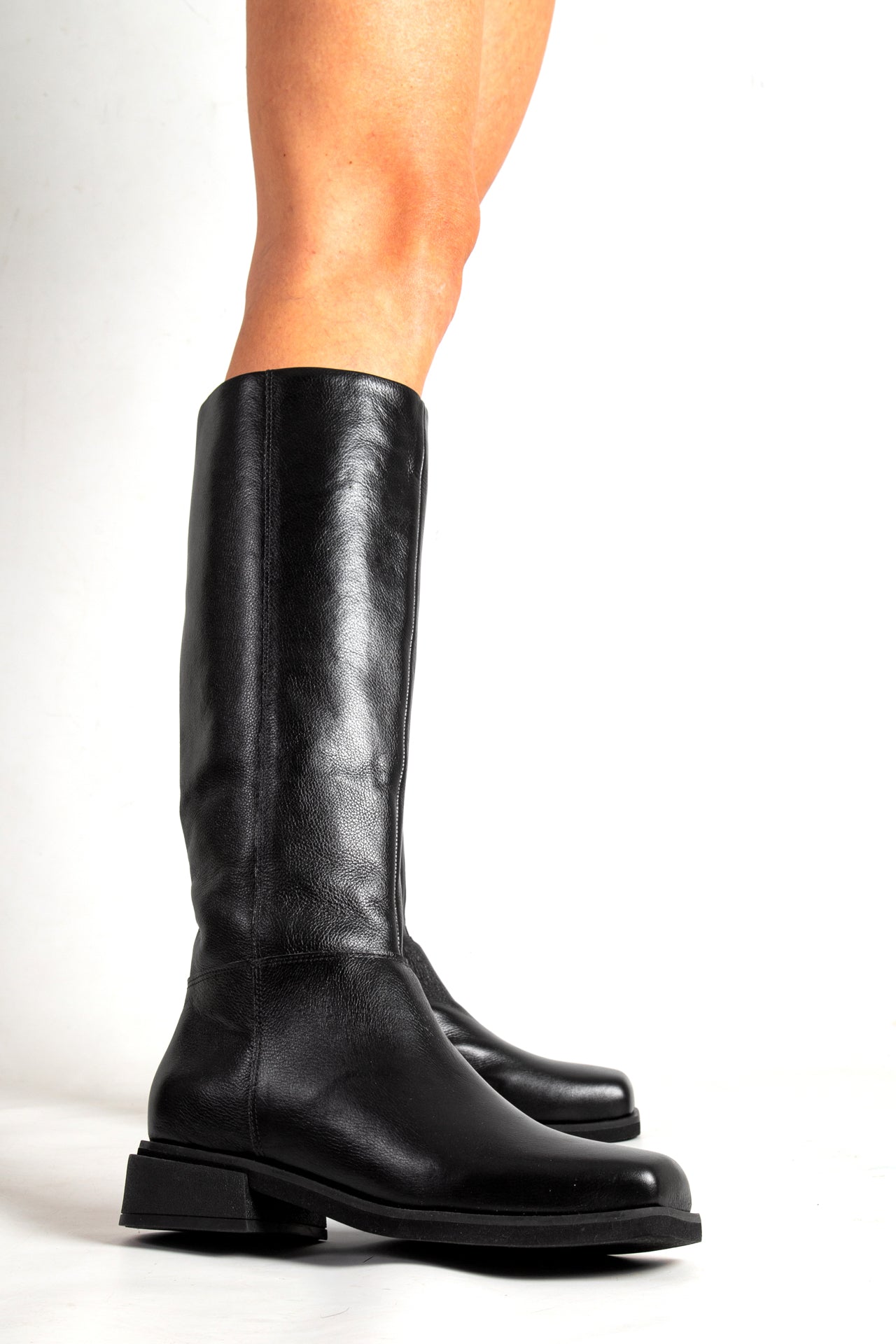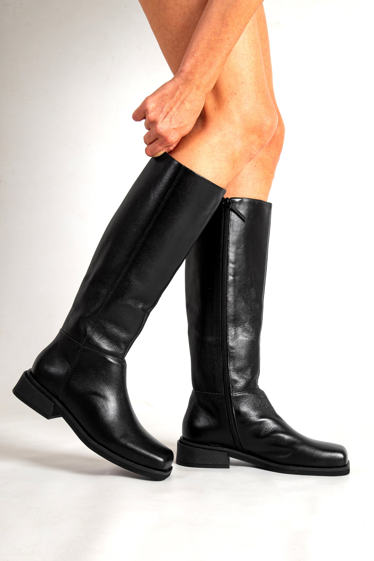 Botas de cuero caña media . Alto de caña 40 cm y altura de taco 2.5 cm.. Industria Brazilera.