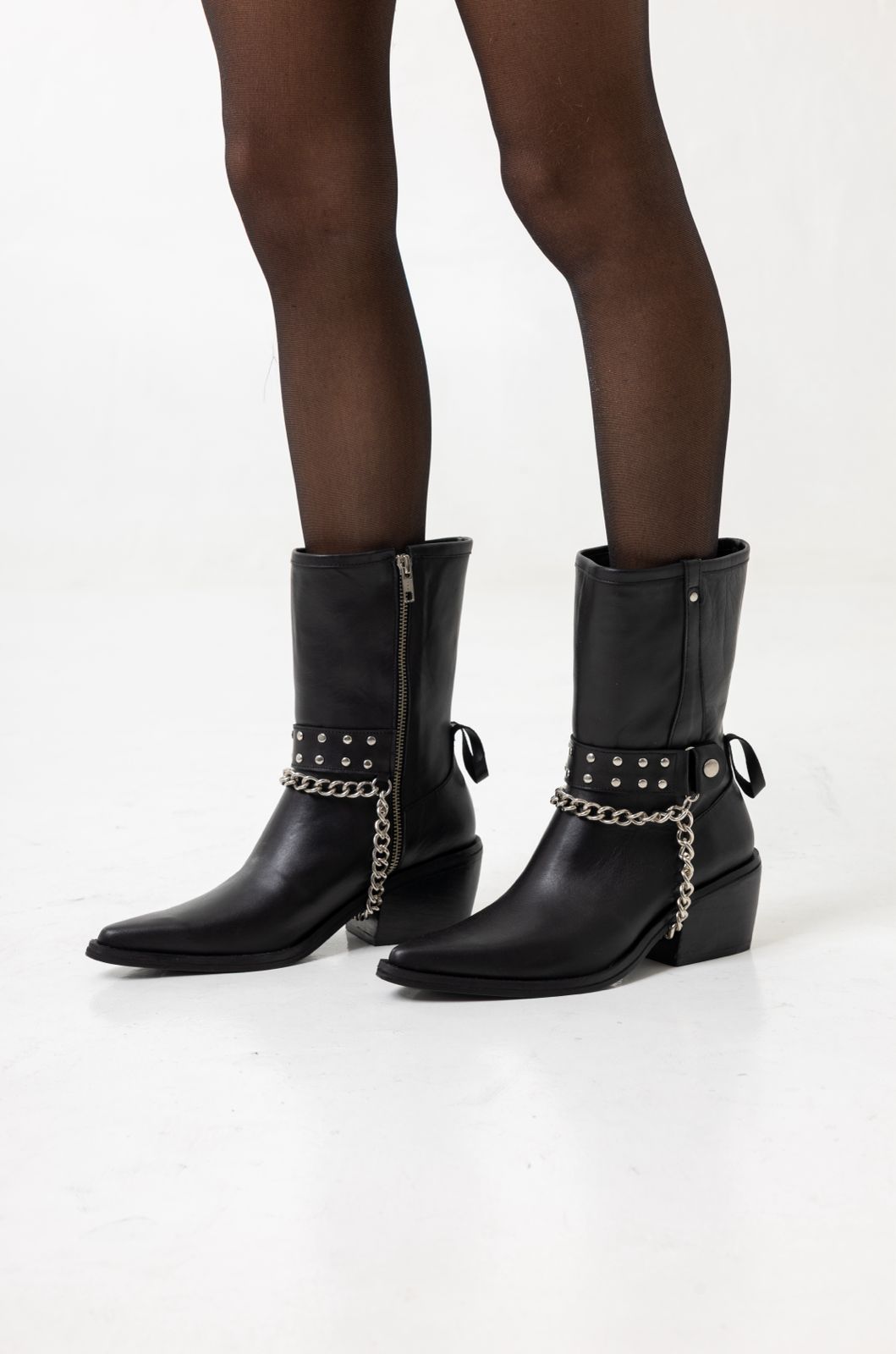 Botas de cuero caña media en punta. Altura de taco 8cm. Industria Argentina.