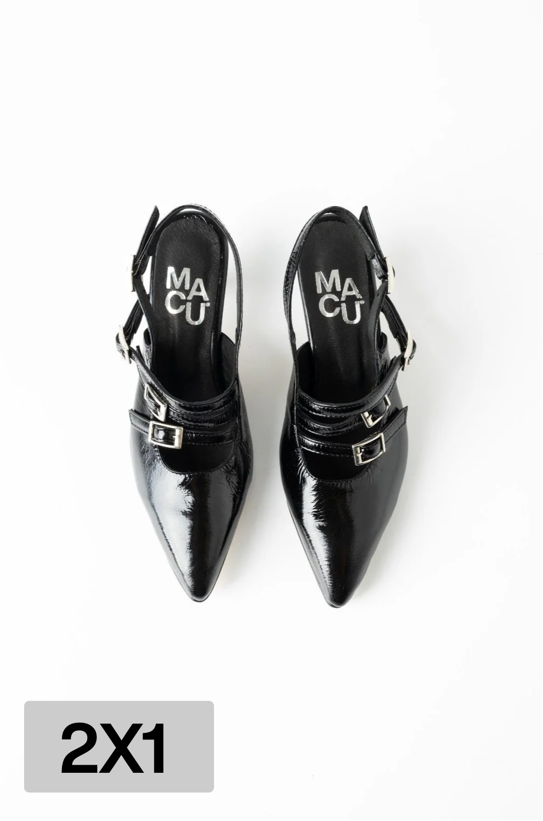 Zapatos de charol cuero con taco aguja, con taco de 3 cm de alto. Industria Argentina.